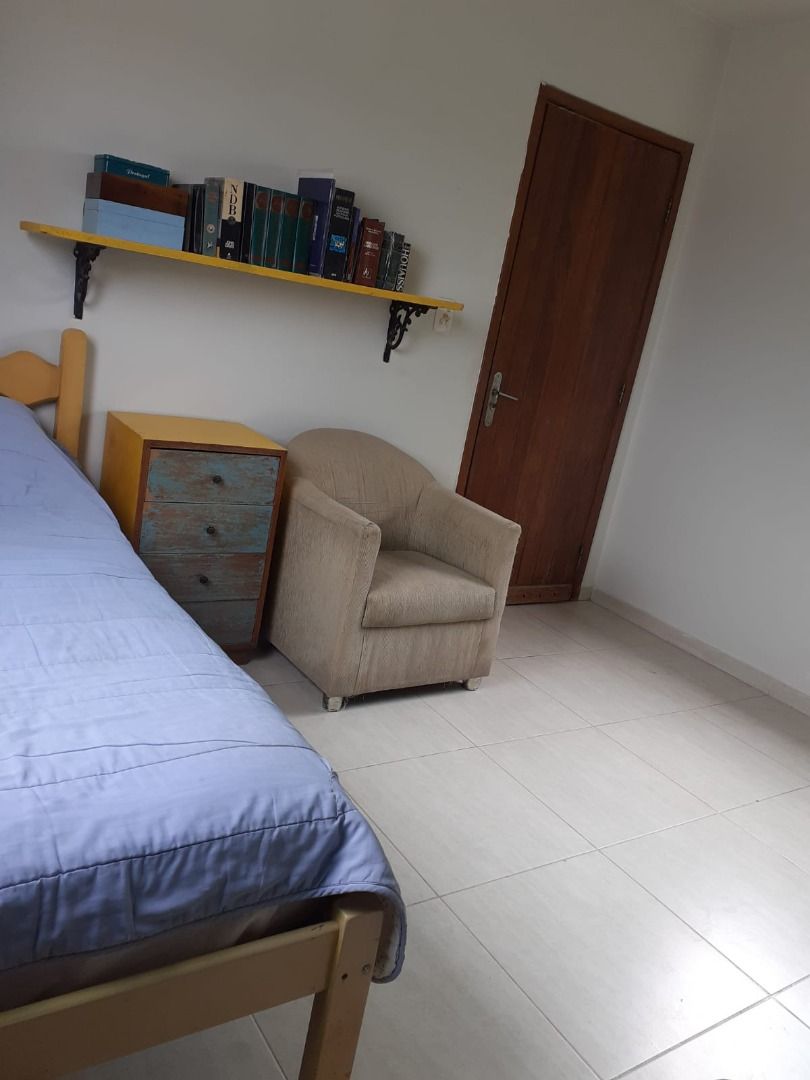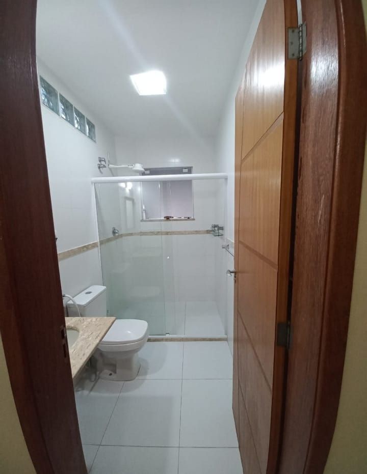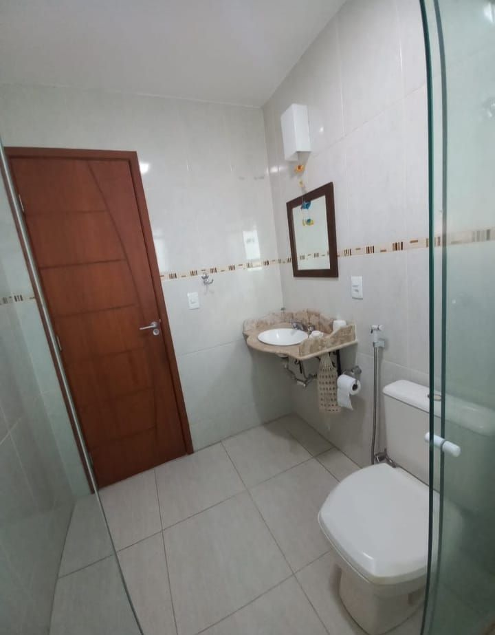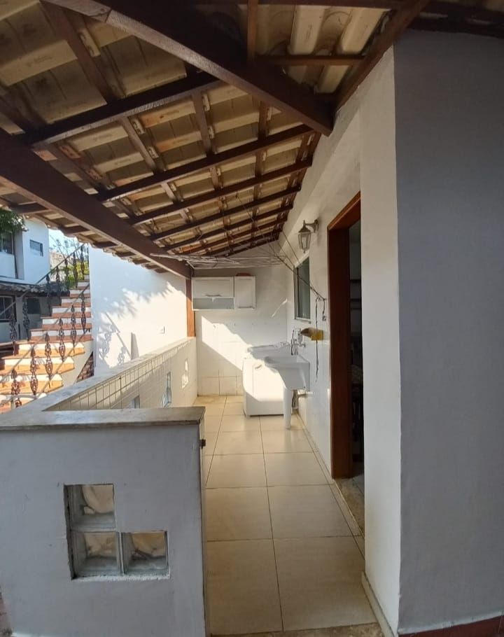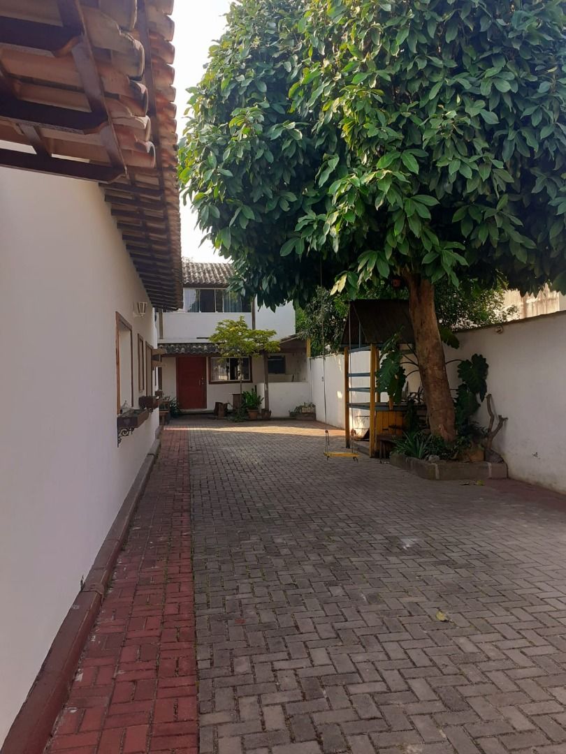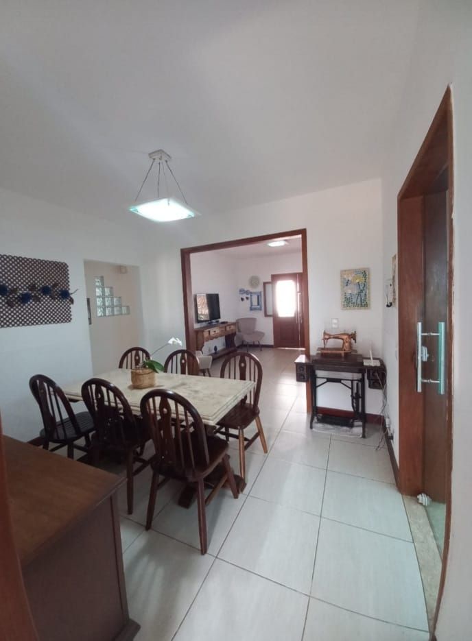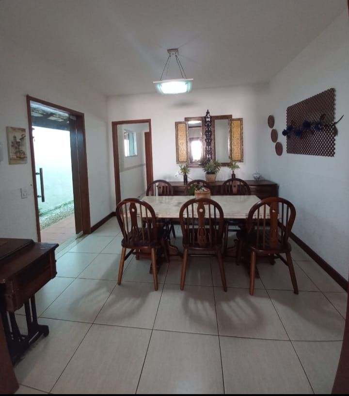 Casa linear em centro de lote com 3 quartos, sendo uma suíte com closet, banheiro social, cozinha, sala de jantar e estar, varanda e lavanderia. No segundo pavimento da casa um anexo com uma suíte .Edícula nos fundos do lote com sala, quarto, cozinha aberta, banheiro e lavanderia. No segundo andar desta edícula, uma grande suíte do mesmo tamanho desta.Garagem para até 8 carros. Cisterna de 12 mil litros.Aquecimento solar nos banheiros e cozinha da casa principal. Espaço gourmet com churrasqueira. Banheiro externo.Amplo quintal com árvores frutíferas. Lote 450m.Área construída em torno de 250m.Lote todo pavimento com bloquetes de concreto. Agradável jardim.Porteira fechada.