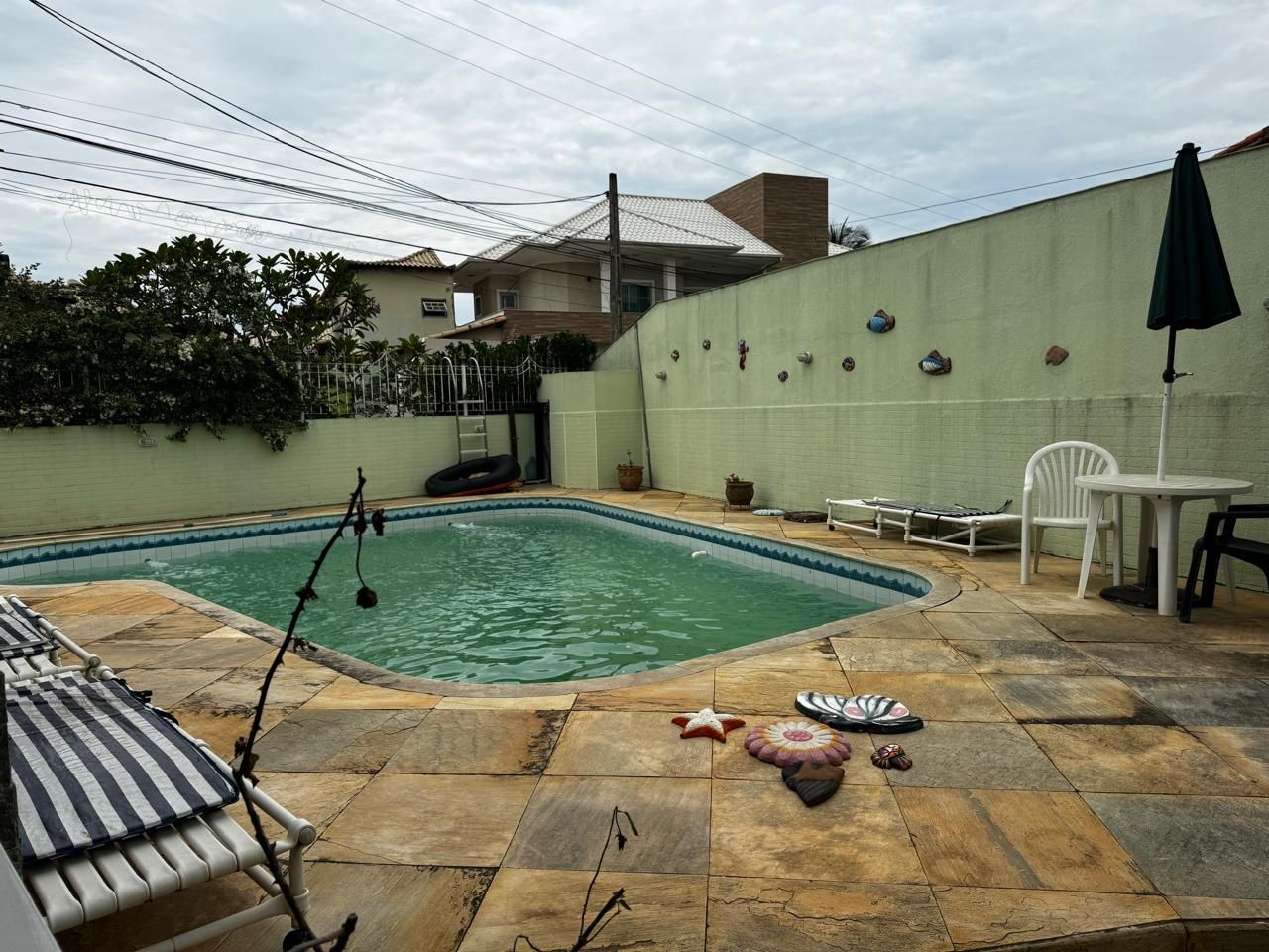 Residência duplex com quintal independente em condomínio fechado com infraestrutura e segurança 24 horas, composta de sala em dois ambientes, cozinha, 3 quartos, sendo umsuíte, banheiro social, área e varanda na frente e na lateral da casa, além de, sauna eespaço gourmet. No piso superior, dois amplos quartos com varandas e banheiro social.No quintal, anexo à casa há uma grande piscina de alvenaria, quintal gramado e comfrutíferas. Fica na orla da Lagoa de Araruama no bairro Praia Linda em São Pedro da Aldeia.Documentação perfeita.